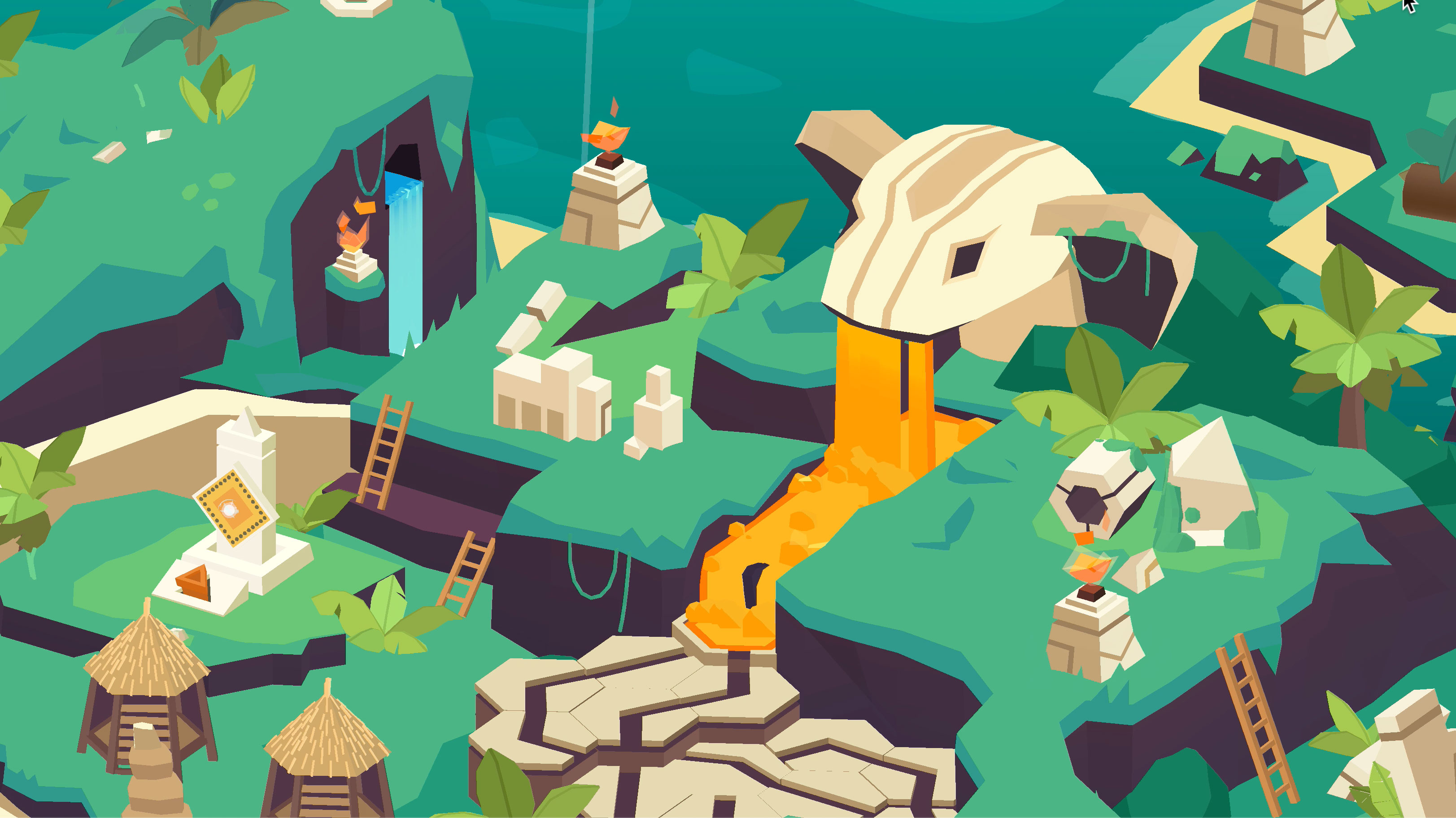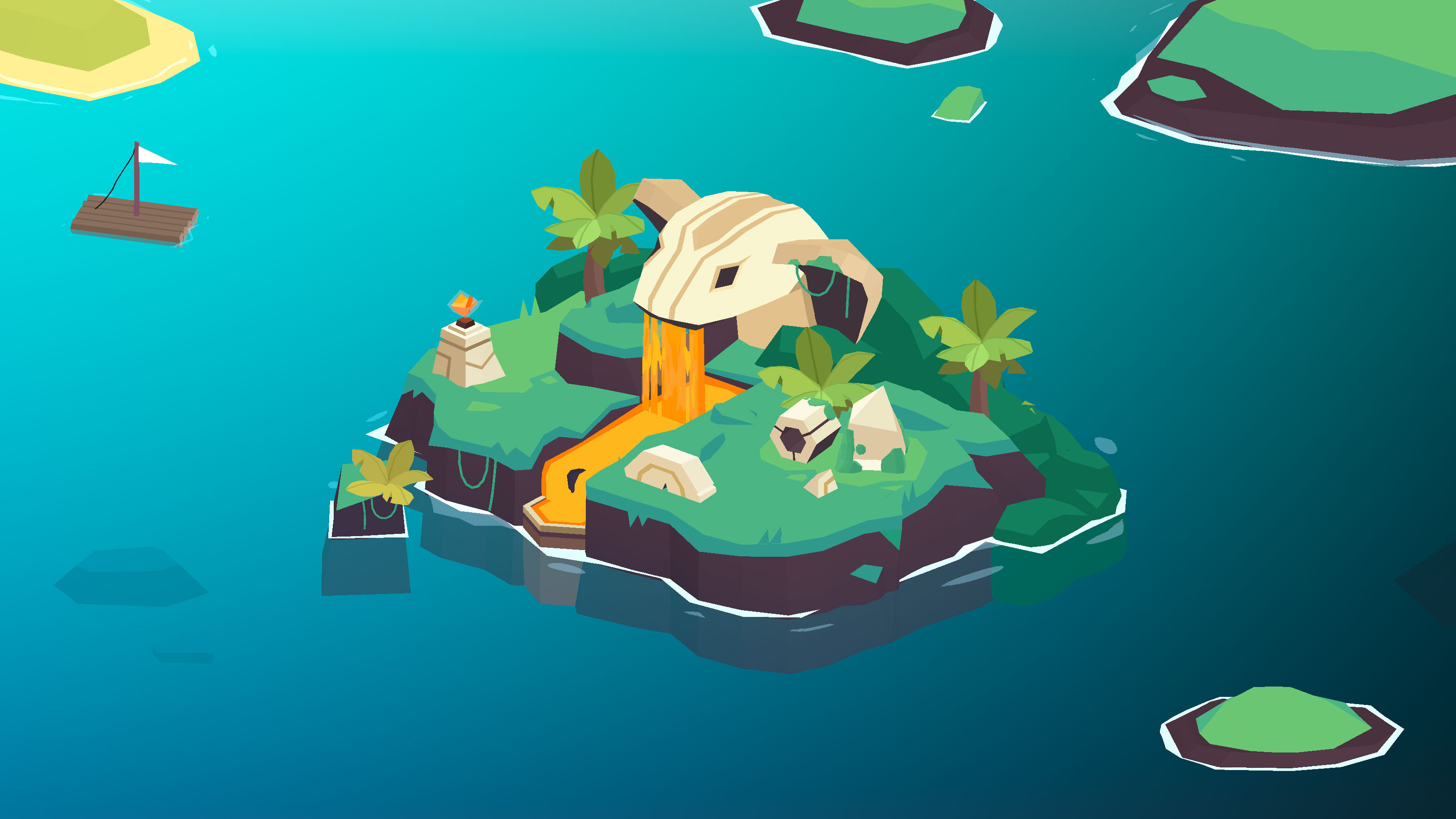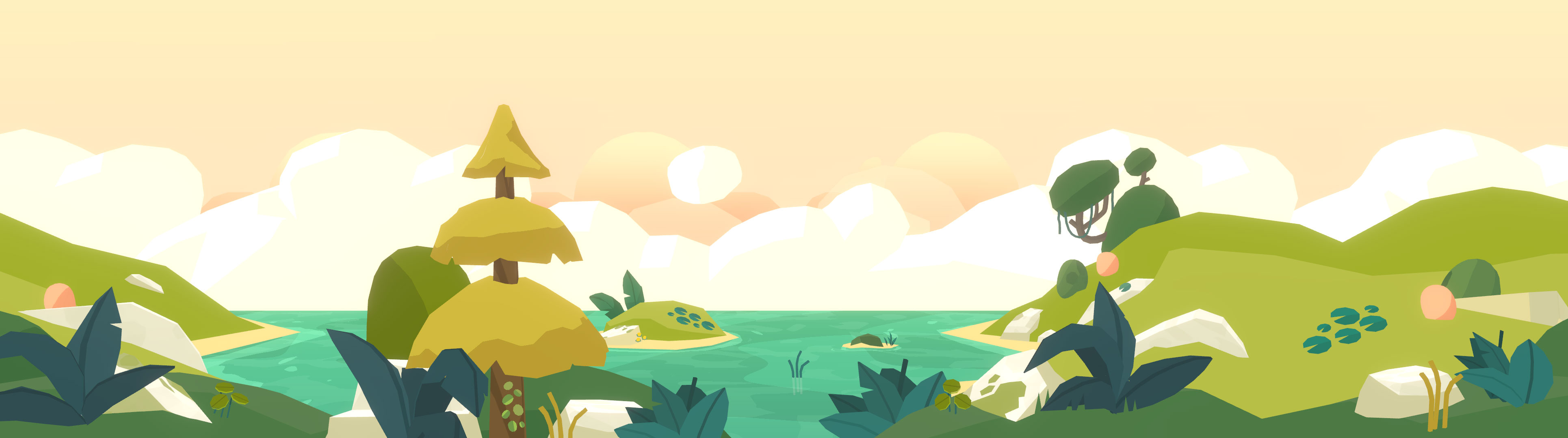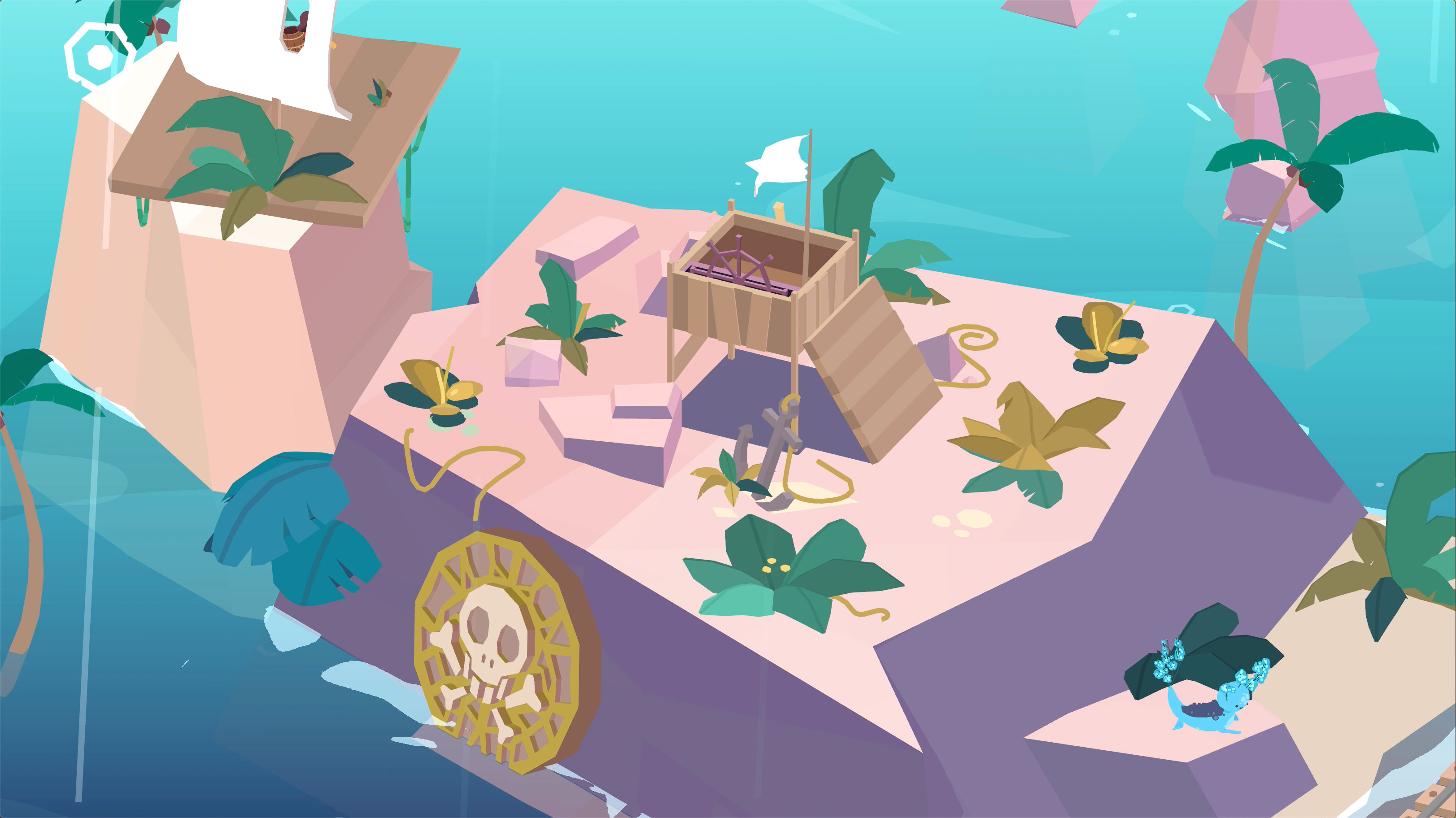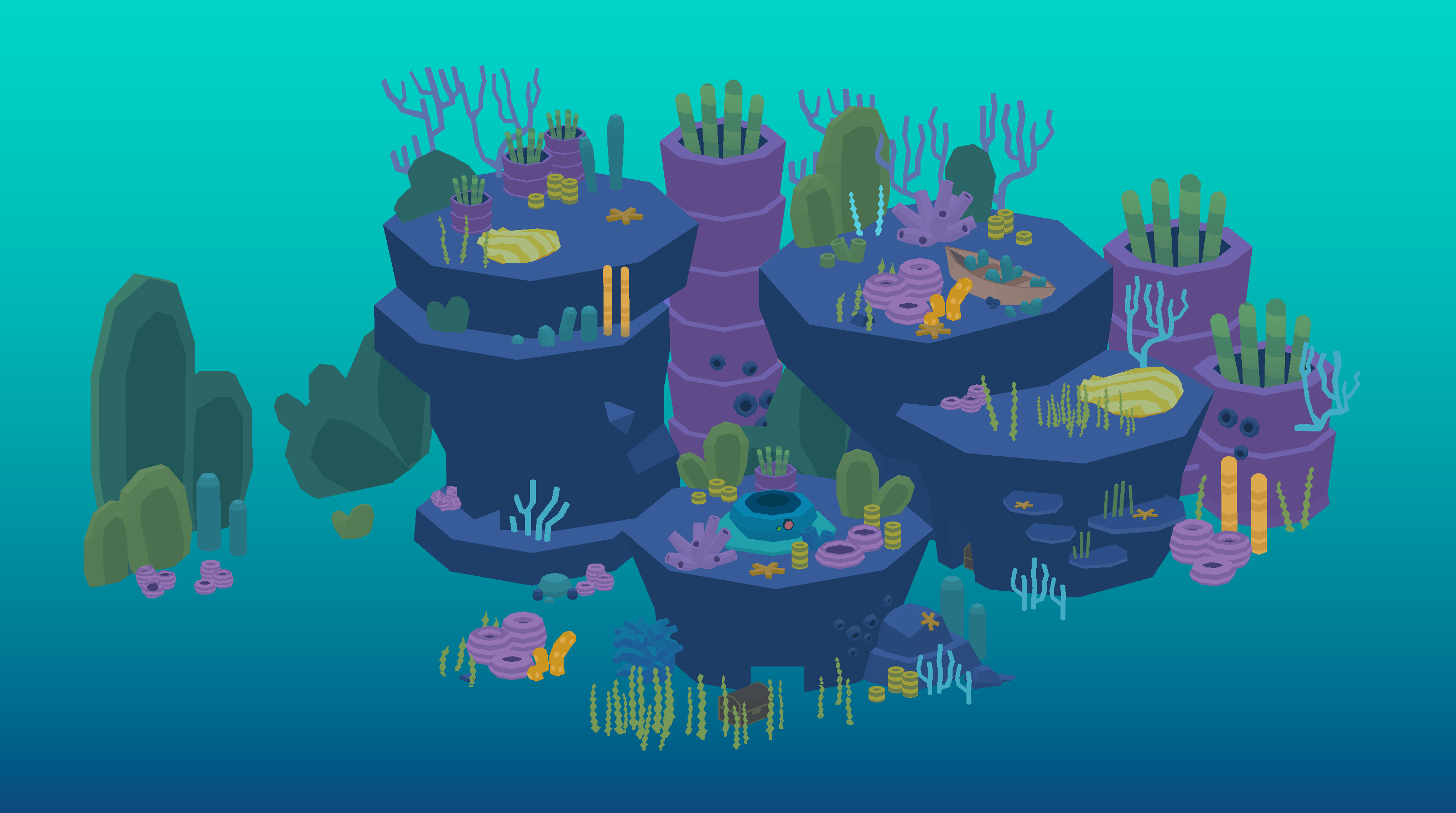 I made shaders in Unity’s Shader Graph to breathe life into the world through animated water effects, rustling foliage, swinging vines, glassy reflections, waterfalls, portals, procedural patterns, shiny crystals, toon shaded elements, pirate flags, screen-space effects and more!